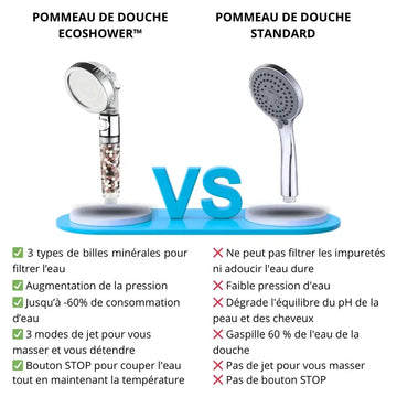 Acheter le pommeau EcoShower c'est réaliser des économies et bénéficier d'une meilleure qualité d'eau. Les autres modèles ne proposent pas ce genre d'avantages exclusifs.